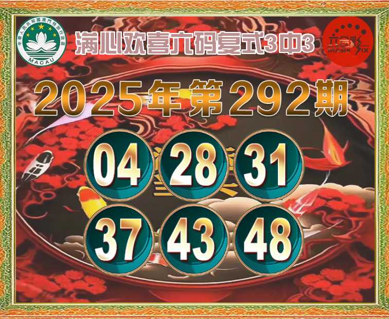 292期:【满心欢喜】 🍒六码复式3中3🍒