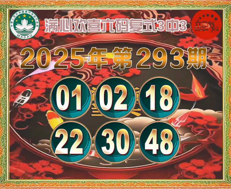 293期:【满心欢喜】 🍒六码复式3中3🍒
