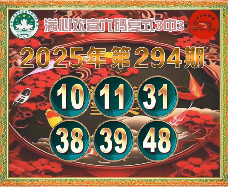 294期:【满心欢喜】 🍒六码复式3中3🍒