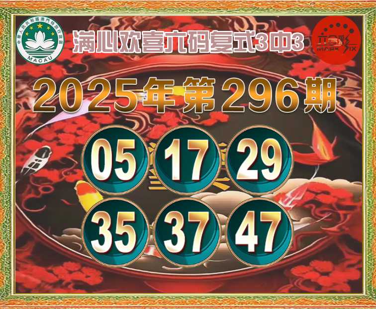 296期:【满心欢喜】 🍒六码复式3中3🍒