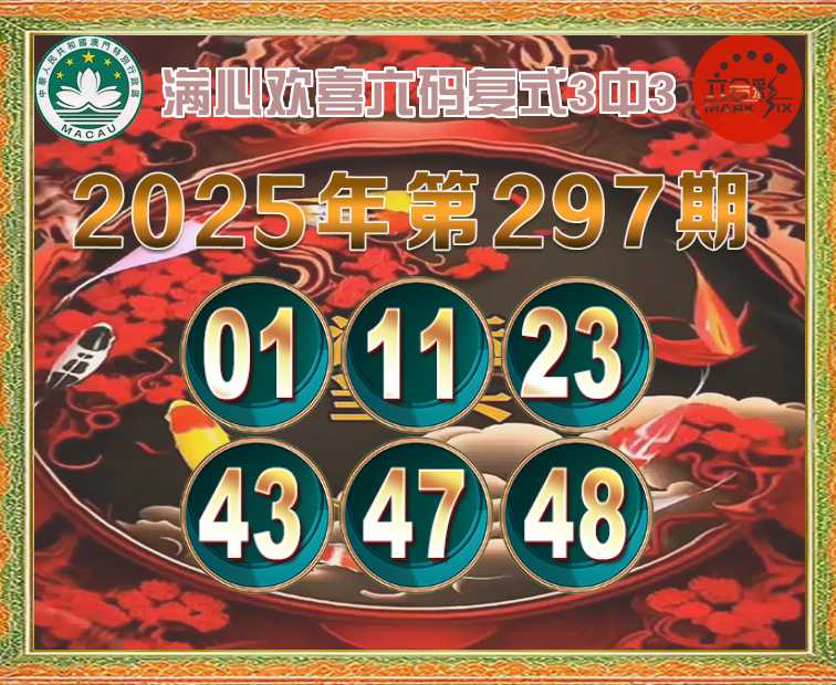 297期:【满心欢喜】 🍒六码复式3中3🍒