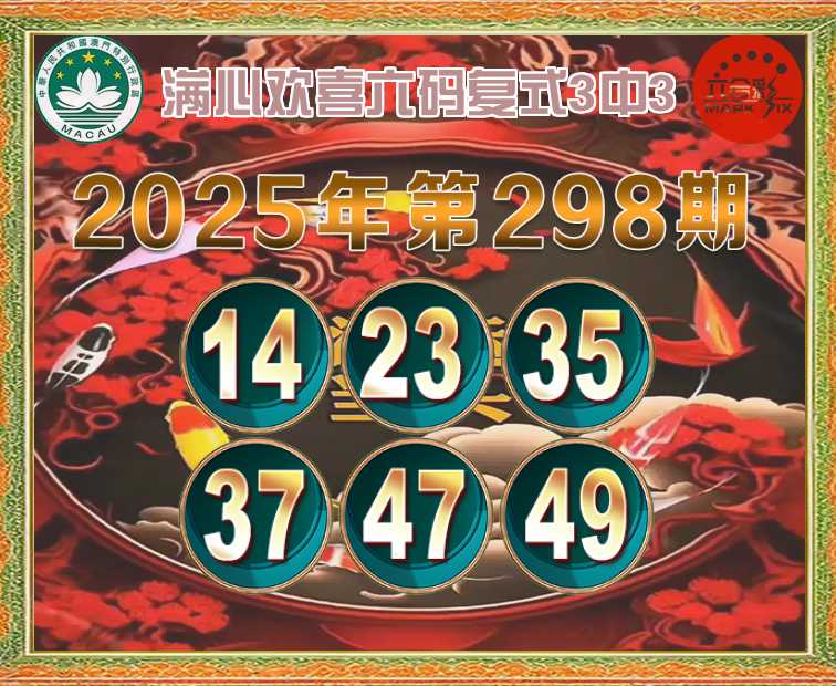 298期:【满心欢喜】 🍒六码复式3中3🍒