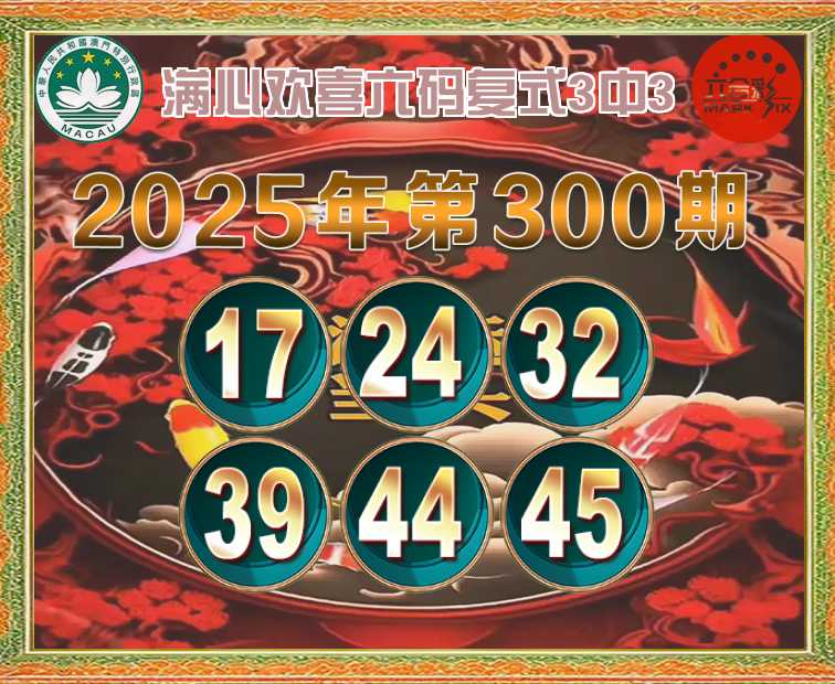 300期:【满心欢喜】 🍒六码复式3中3🍒