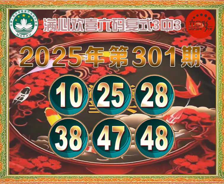 301期:【满心欢喜】 🍒六码复式3中3🍒