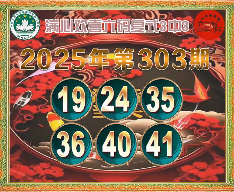 303期:【满心欢喜】 🍒六码复式3中3🍒