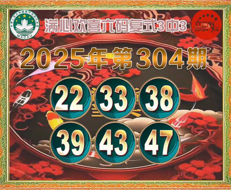 304期:【满心欢喜】 🍒六码复式3中3🍒