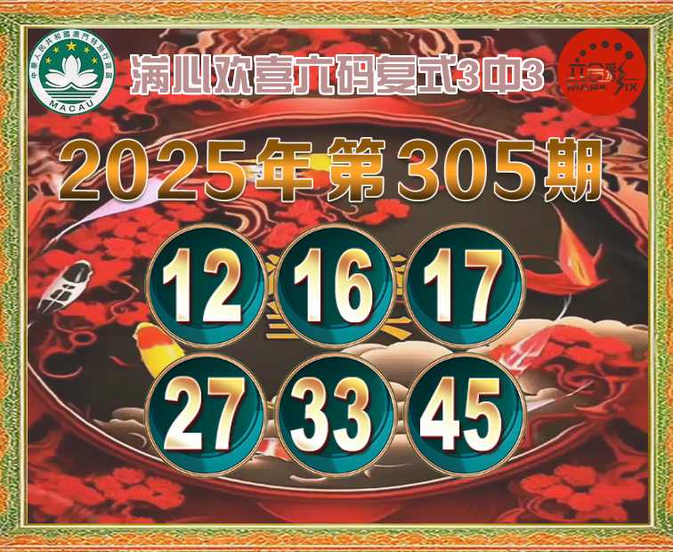 305期:【满心欢喜】 🍒六码复式3中3🍒
