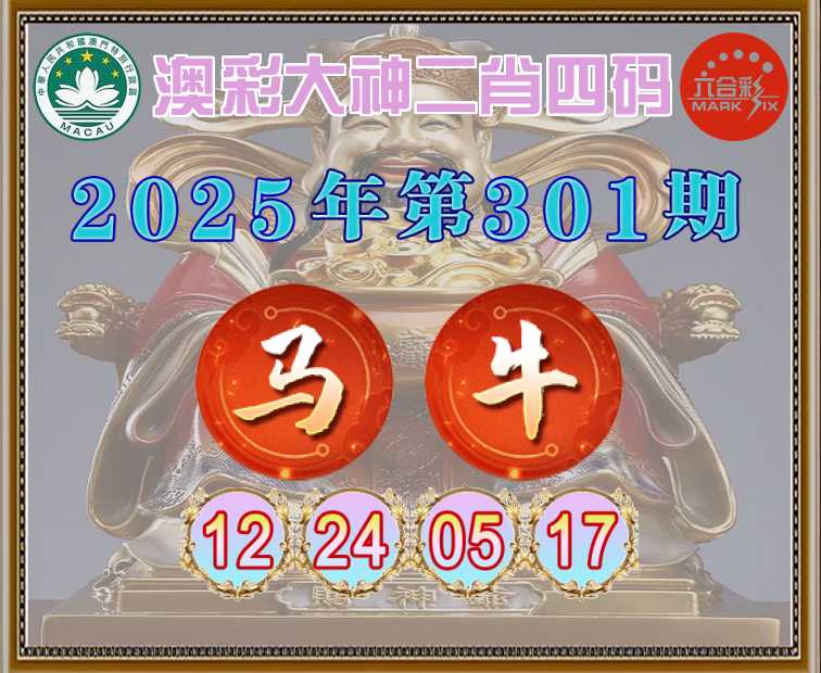 301期:【澳彩大神】 ♣️二肖四码♣️【马】【12.24.05.17】开:牛05