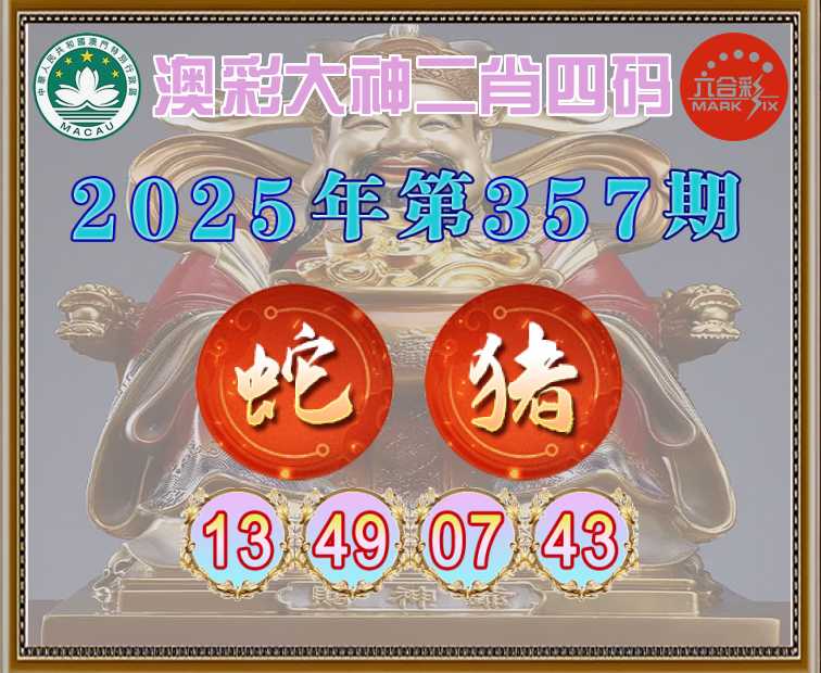 357期:【澳彩大神】 ♣️二肖四码♣️【猪】【13.49.07.43】开:蛇49