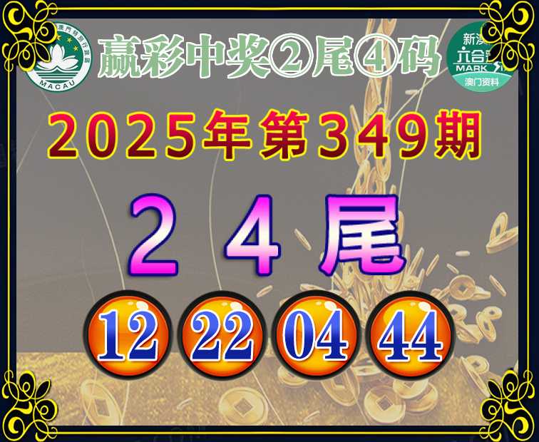 349期:『赢彩中奖』 🏇②尾④码🏇【24尾主:12.22.04.44】开:22
