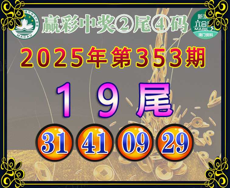 353期:『赢彩中奖』 🏇②尾④码🏇【19尾主:31.41.09.29】开:01