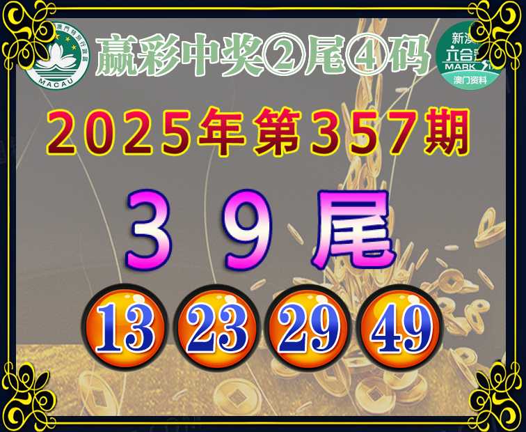 357期:『赢彩中奖』 🏇②尾④码🏇【39尾主:13.23.29.49】开:49