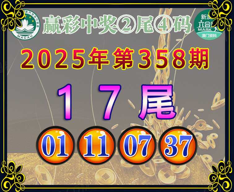 358期:『赢彩中奖』 🏇②尾④码🏇【17尾主:01.11.07.37】开:07