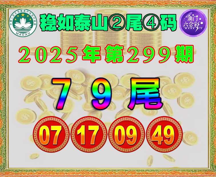 299期: 😳『稳如泰山』 😳②尾④码😳【79尾主:07.17.09.49】开:49