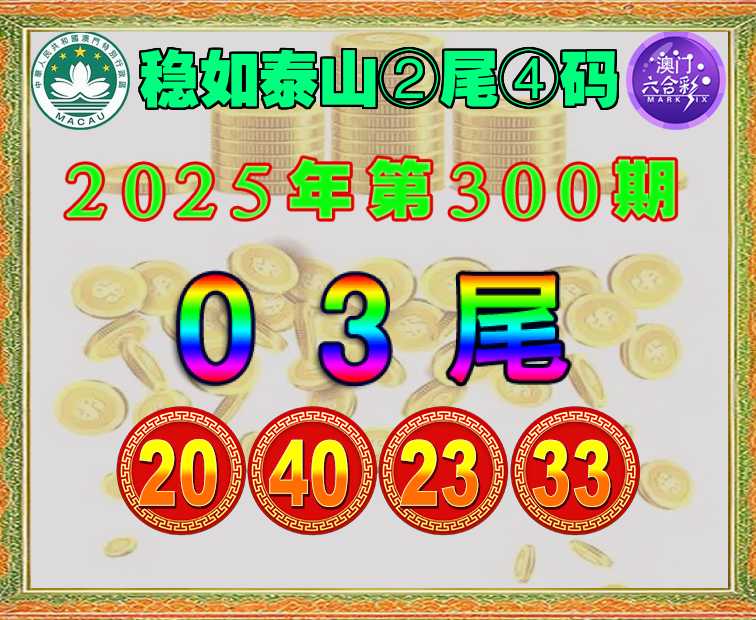 300期: 😳『稳如泰山』 😳②尾④码😳【03尾主:20.40.23.33】开:40