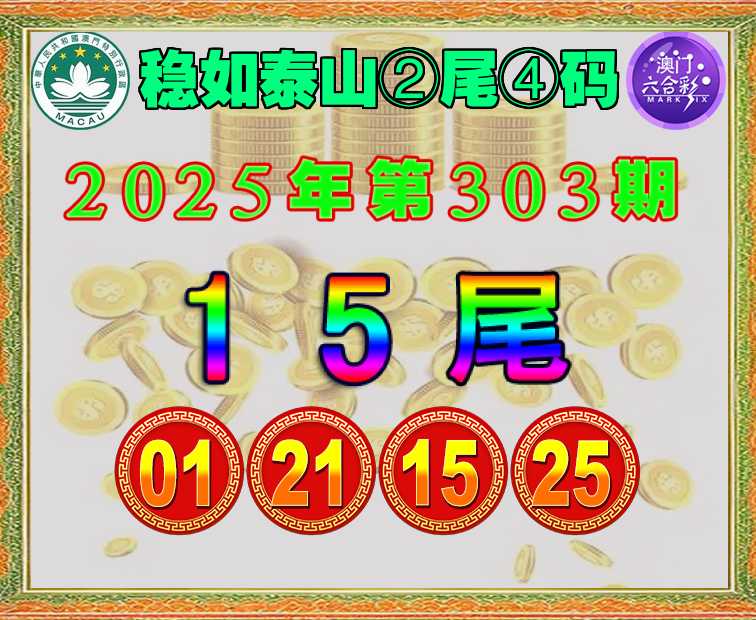 303期: 😳『稳如泰山』 😳②尾④码😳【15尾主:01.21.15.25】开:15