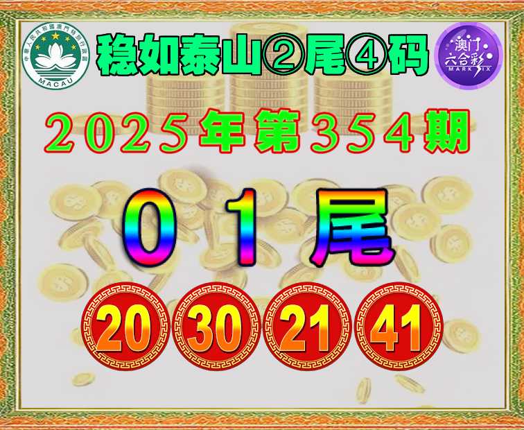 354期: 😳『稳如泰山』 😳②尾④码😳【01尾主:20.30.21.41】开:30