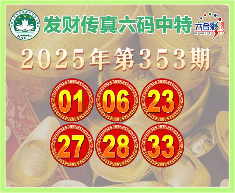 353期: 🥠『发财传真』 🥠六码中特🥠【01.06.23.27.28.33】开:01